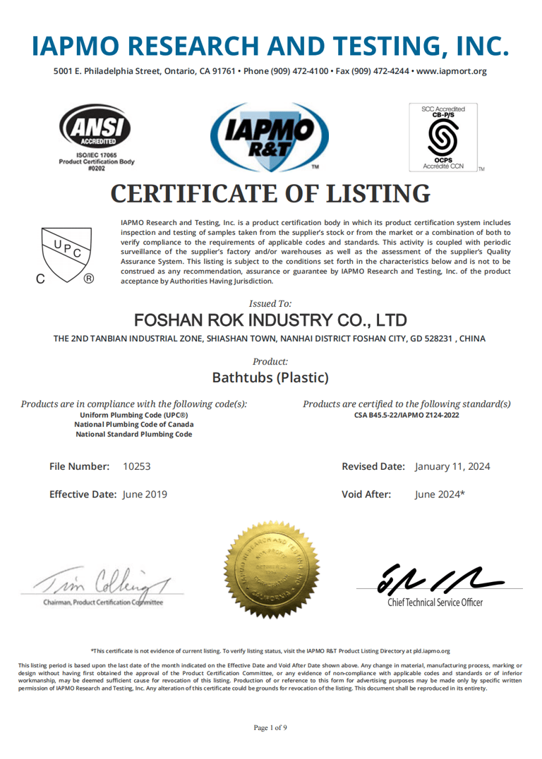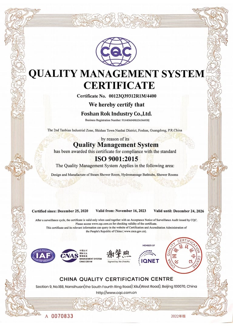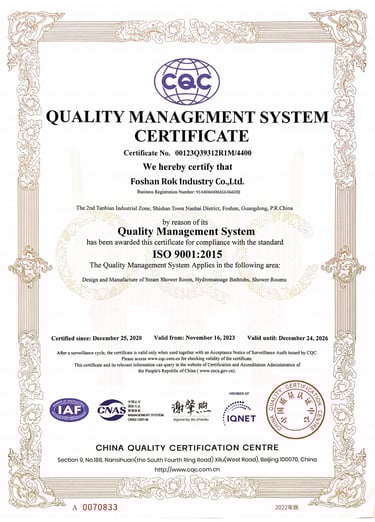 Since 2008, Rokbath has developed nine series products with more than 1000 items, which includes steam shower room, integrated shower room, outdoor SPA, massage bathtub, shower enclosure, shower panel, ceramic sanitary ware, bathroom cabinet and bathroom hardware fittings etc, among which some products were patented in appearance design and practicability, and certified by CE ,SASO and RCM.